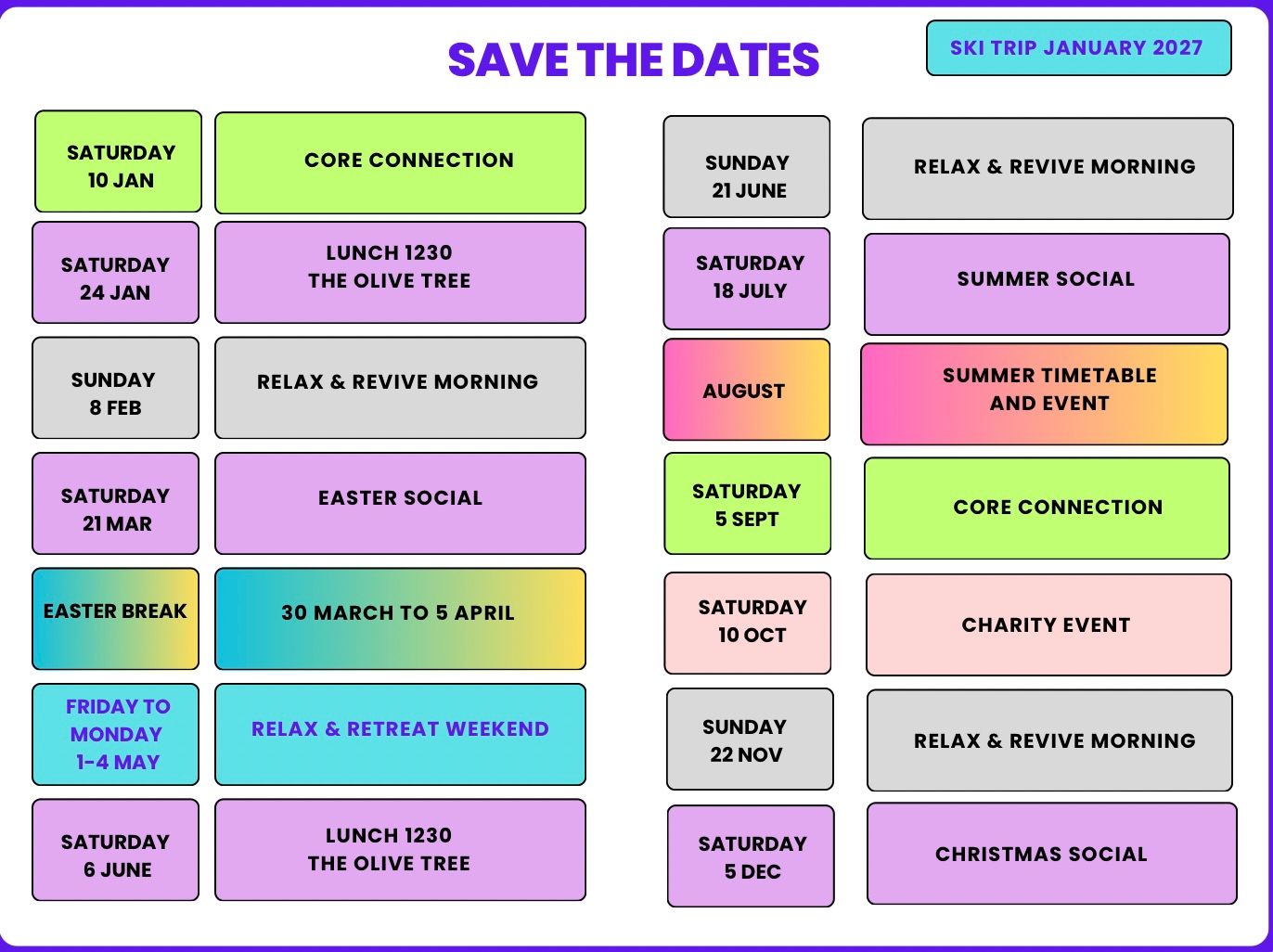 A blast of endorphins to start yourweekend the right way. Sometimes Zumba, sometimes freestyle dance fit, sometimes an iconic era! Cardio, shape, tone and masses of fun and laughter along the way. Never a dull moment